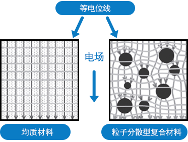 在基质中混入填料时,复合材料的介电常数会受到填料的分散状态的影响。我们利用这个规律开发了通过测量复合材料的介电常数来推算填料的粒径分布的系统。