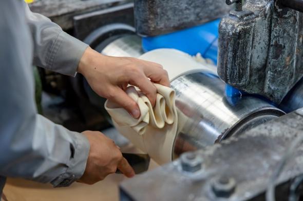 白石カルシウムが新しいゴムを販売するときや、得意先からクレームがあったときなどに、同じゴムを作ってその物性を評価します。