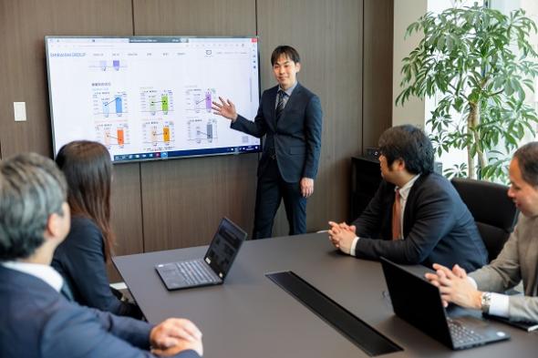 - 部署によって多少異なるかもしれませんが、私の部署では、得意先や仕入先との商談で上の立場の人と話すことが多く、業務に関する知識から仕事に取り組む姿勢、向き合い方まで、いろいろなことが学べる環境だと思います。